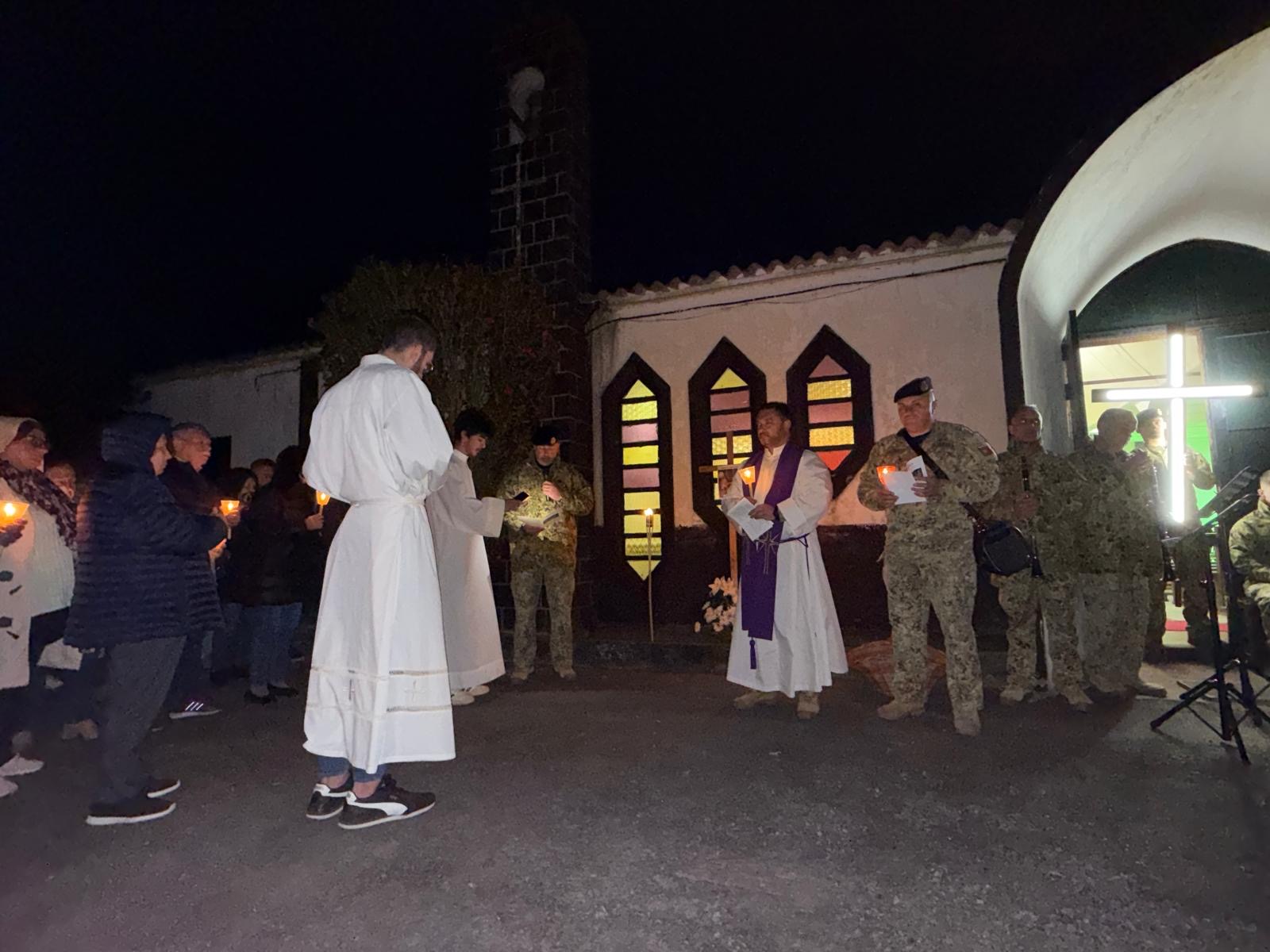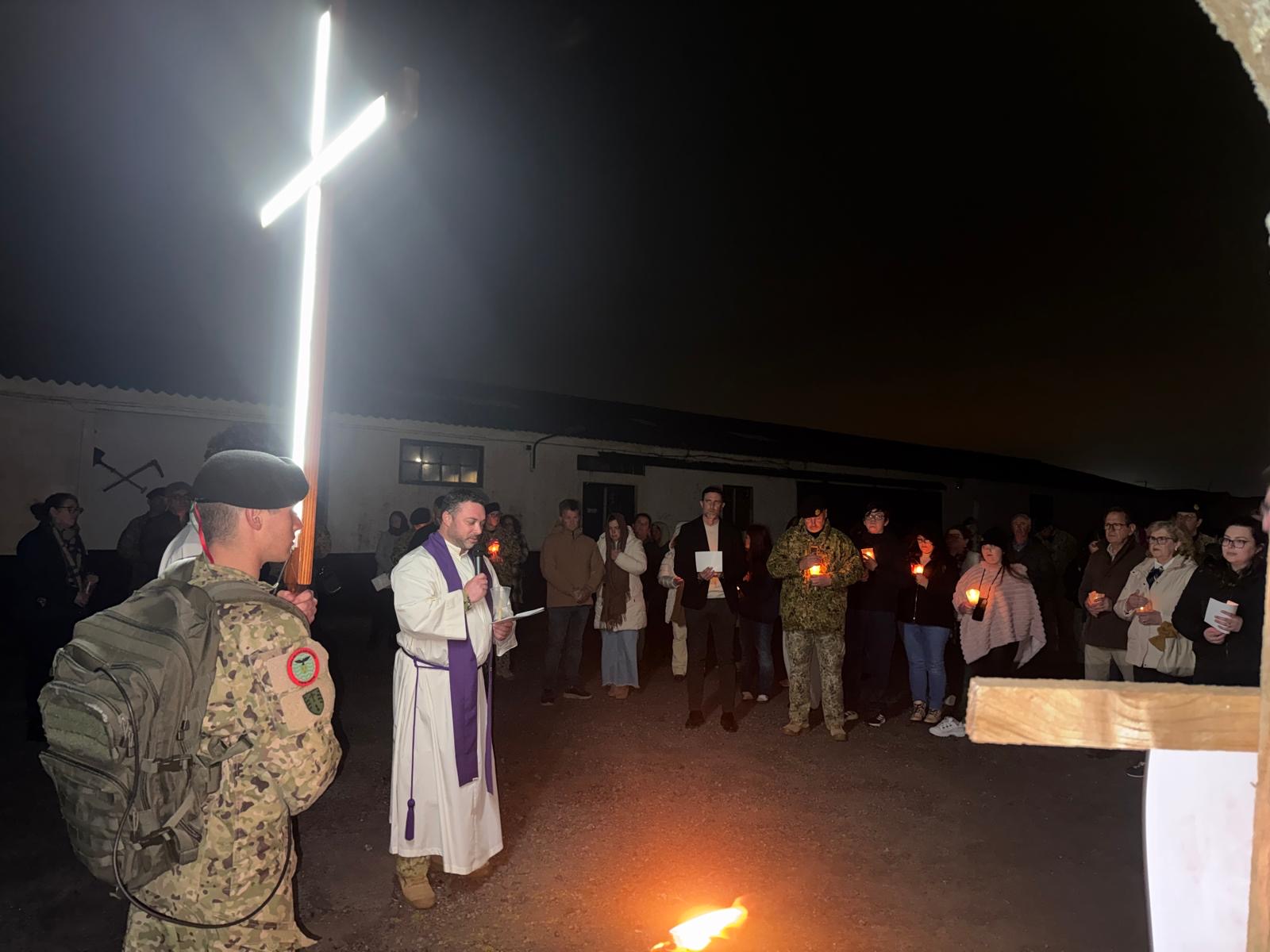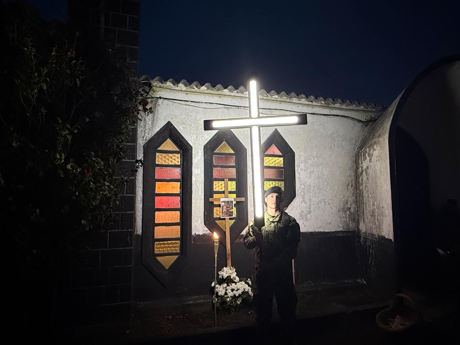 A iniciativa teve início com a celebração da Via Sacra – também designada “Caminho de Paz” – que percorreu as instalações do Regimento, presidida pelo Tenente Capelão Bruno Espínola, da Zona Militar dos Açores (ZMA). A cerimónia, refletindo sobre a Paixão e Morte de Jesus Cristo, estabeleceu um paralelismo com a vida militar, destacando valores como o sacrifício, a resiliência, a disciplina e o espírito de missão. As estações foram dinamizadas por militares e civis presentes, num momento de participação ativa e reflexão partilhada.