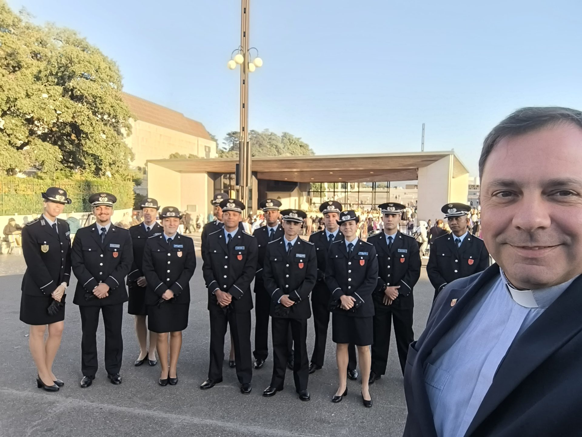 A comitiva, acompanhada pelo Capelão Adjunto para a PSP, Pe. Luís Leal, juntou-se a milhares de peregrinos oriundos de todo o mundo para celebrar um dos momentos mais marcantes do calendário mariano. A presença dos futuros oficiais da PSP sublinha o forte vínculo da instituição aos valores da fé e do serviço à comunidade.