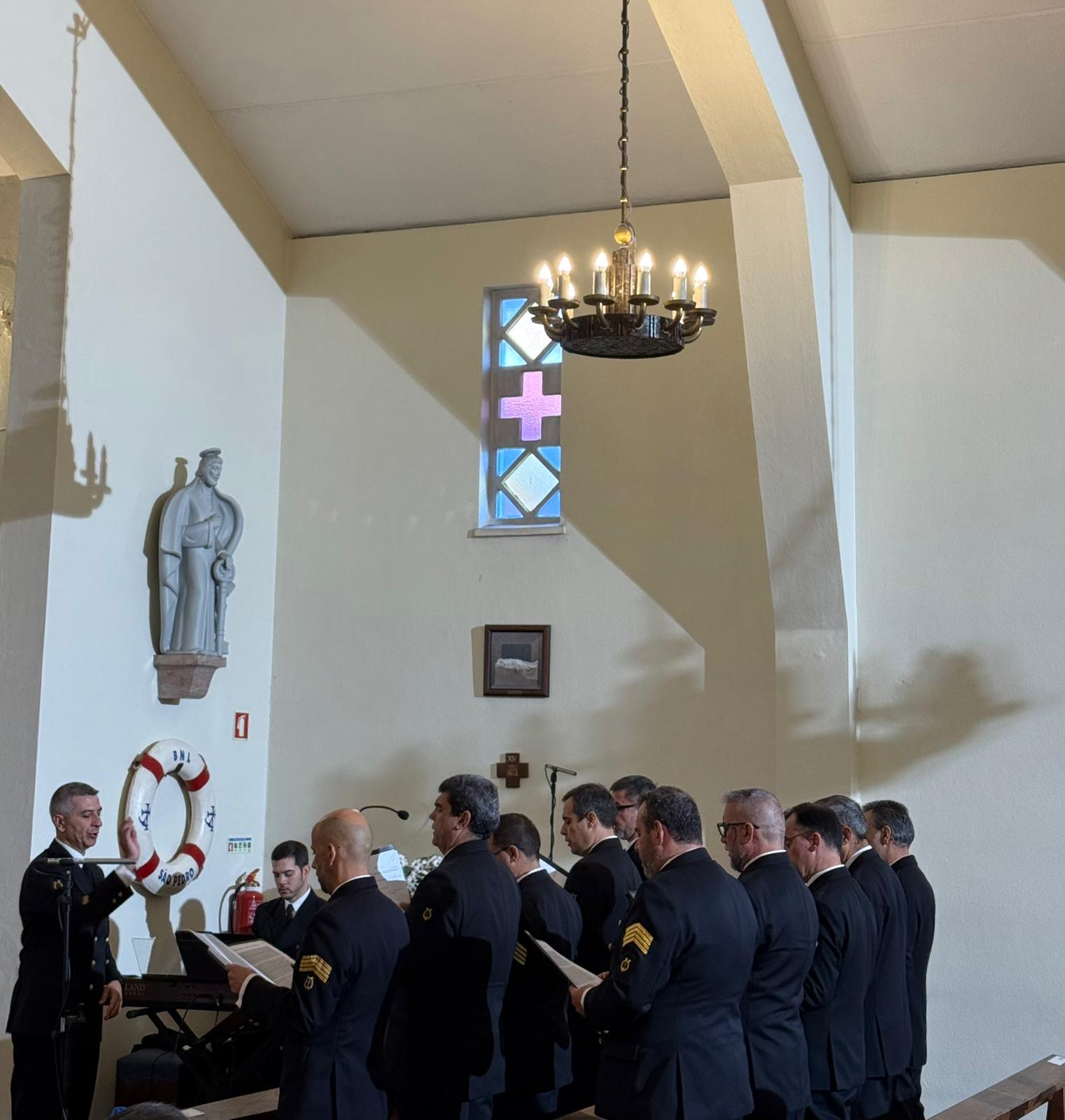 O ponto alto da manhã foi a Eucaristia Comemorativa, presidida por D. Sérgio Dinis, Bispo do Ordinariato Castrense de Portugal. A cerimónia, transmitida pela TVI, contou com a presença de altas patentes das Forças Armadas, encabeçadas por Sua Excelência o Almirante Jorge Nobre de Sousa, Chefe do Estado-Maior da Armada e Autoridade Marítima Nacional.