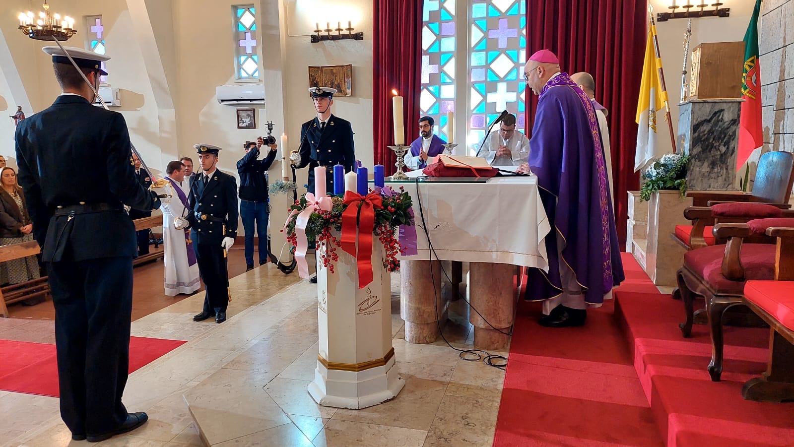 Na sua homilia, perante uma assembleia que incluía oficiais, sargentos, praças, famílias e membros da comunidade, D. Sérgio Dinis evocou os 70 anos da capela como um “farol aceso no coração da Base Naval”. Partindo das leituras do dia, o Bispo Castrense relacionou a virtude da vigilância, central no tempo do Advento, com a missão da Marinha. “Também a Marinha sabe o que significa vigilar. Sabe o que é estar atento ao tempo, ao mar e à vida. […] Mas hoje Jesus pede-nos algo mais profundo: vigiar a própria alma”, afirmou.