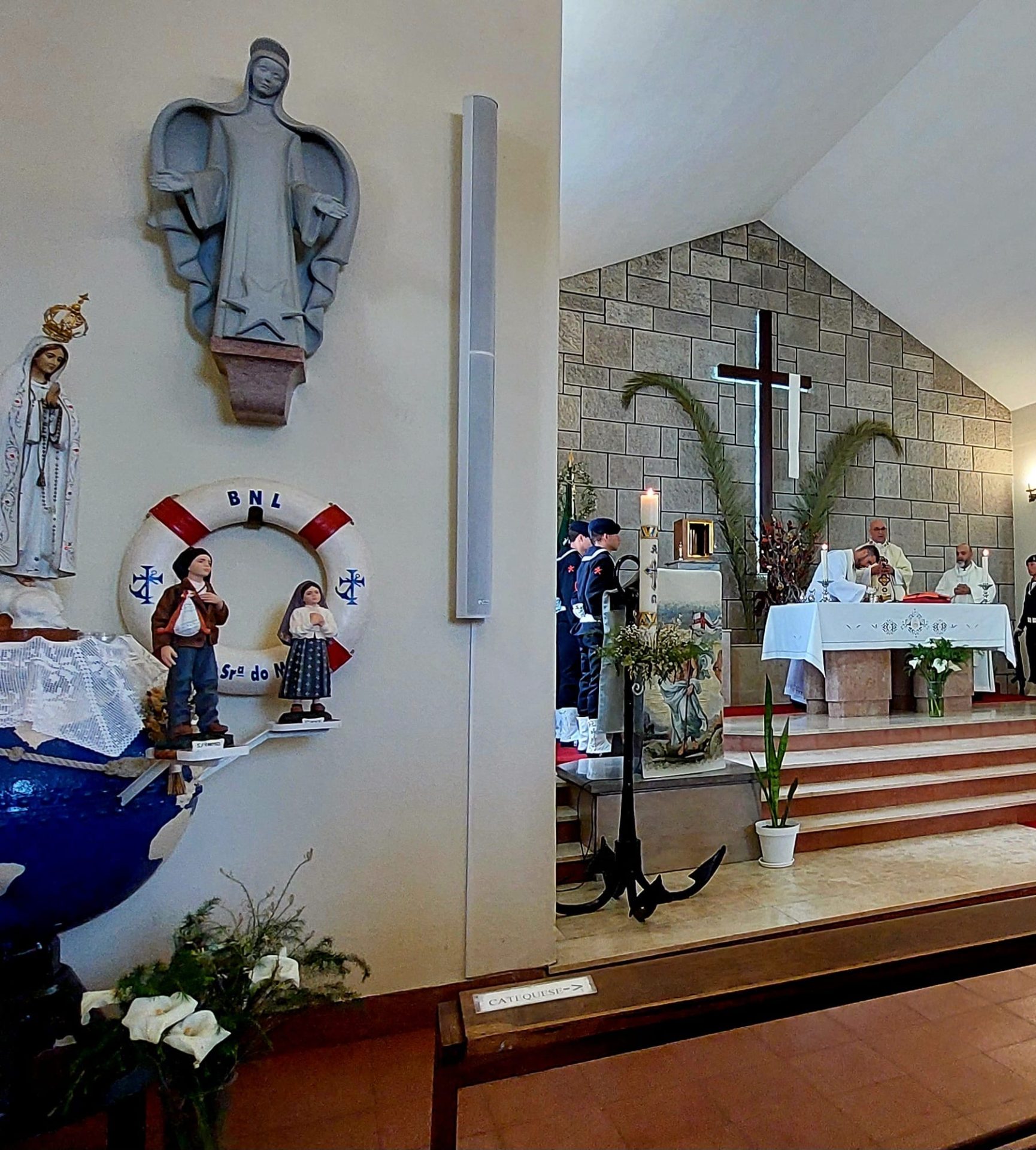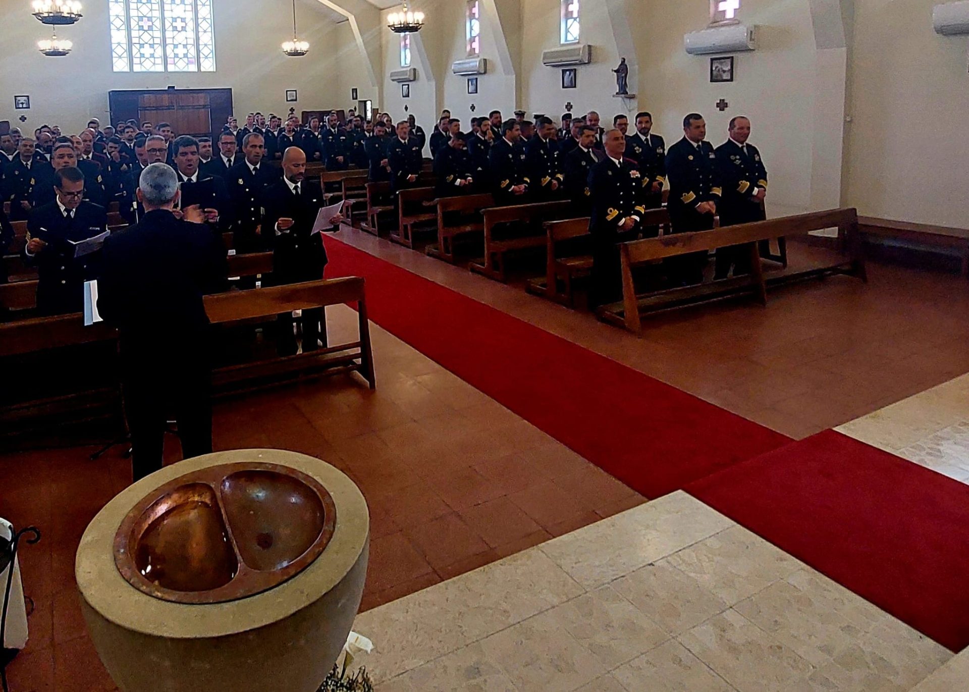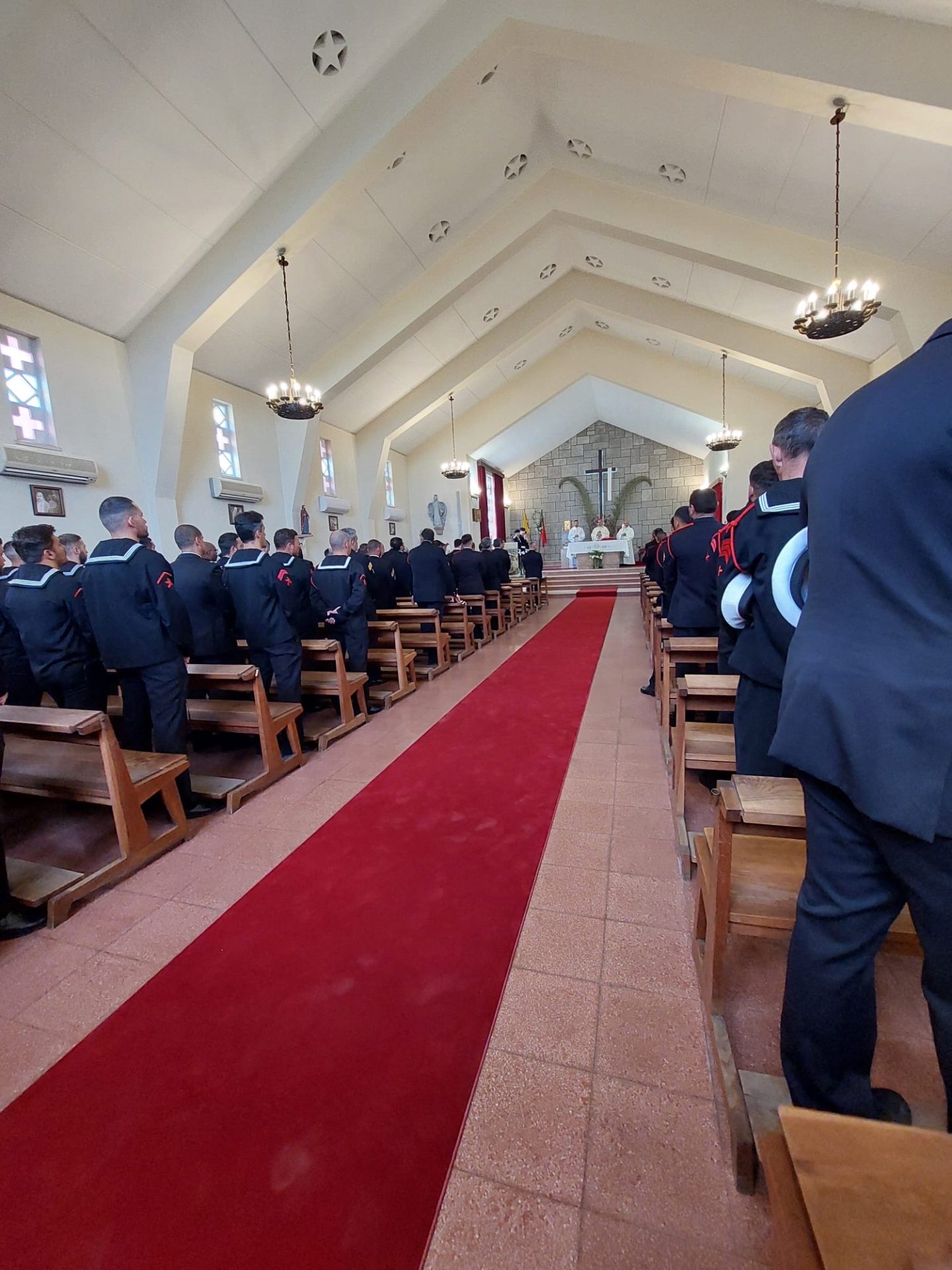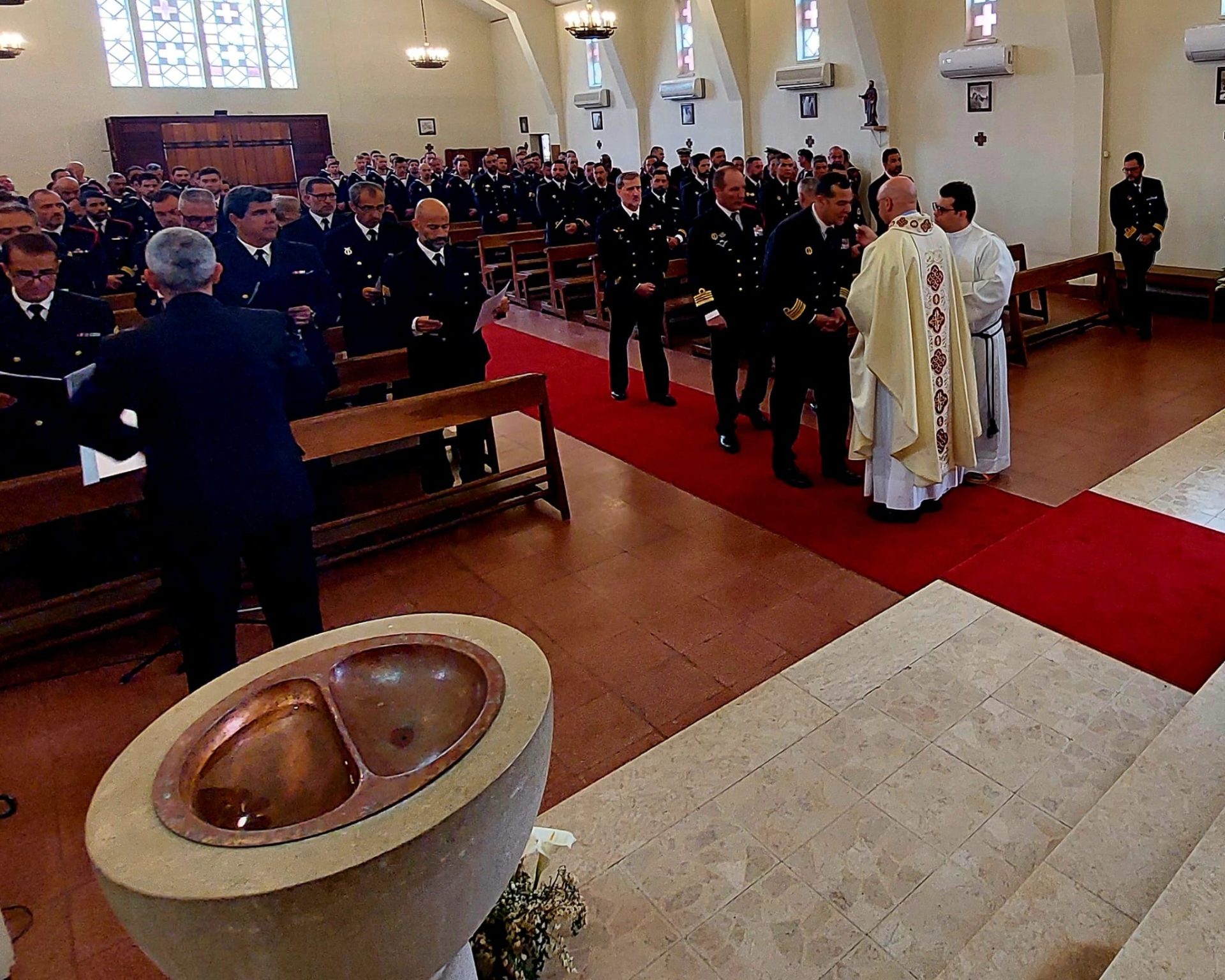A celebração Eucarística contou com a presença do Comandante do Corpo de Fuzileiros, Comodoro Martins de Brito, oficiais, sargentos, praças e civis, bem como do Capelão-Adjunto para a Marinha e Vigário Geral, Diamantino Teixeira, e do capelão dos fuzileiros, Marco Belchior. O grupo coral da Banda da Armada animou a liturgia, enquanto uma guarda de honra e os toques regulamentares marcaram a solenidade da ocasião.