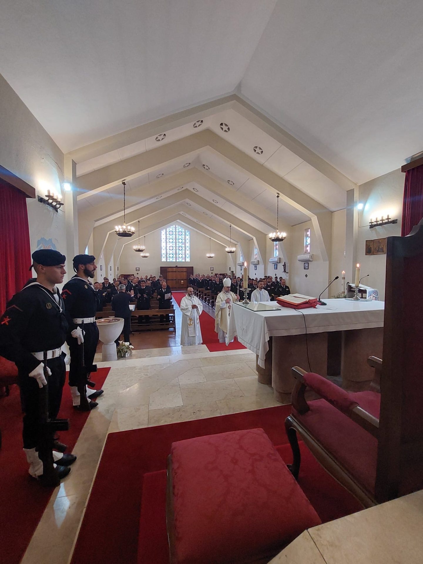 As comemorações do 405.º aniversário do Corpo de Fuzileiros decorrem ao longo de toda a semana, tendo hoje início com esta celebração religiosa na capela de Nossa Senhora do Mar, na Base Naval de Lisboa.