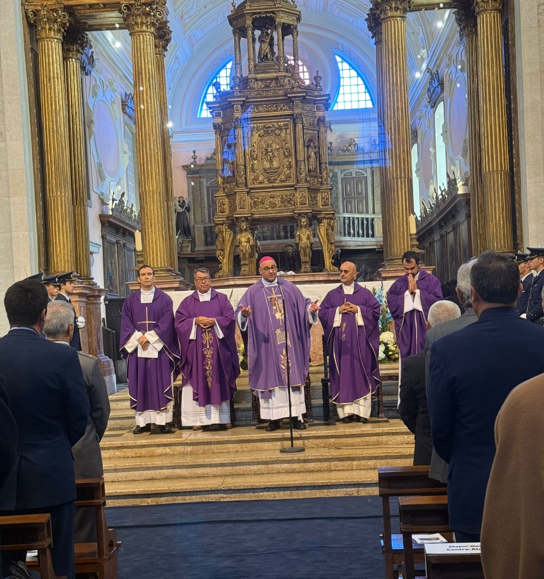 A celebração foi presidida por D. Sérgio Dinis, Bispo do Ordinariato Castrense de Portugal. Na sua Homilia, o Bispo enfatizou a dimensão da fé, esperança e caridade inerente à Missa pelos defuntos. Tendo como foco a liturgia da Comemoração de Todos os Fiéis Defuntos (2 Mac 12, 43-46; 2 Cor 5, 1.6-10; Jo 11, 21-27), D. Sérgio Dinis asseverou que a morte não extingue a vida, mas a consome em Deus, sustentada pela promessa de Cristo: “Eu sou a ressurreição e a vida.”