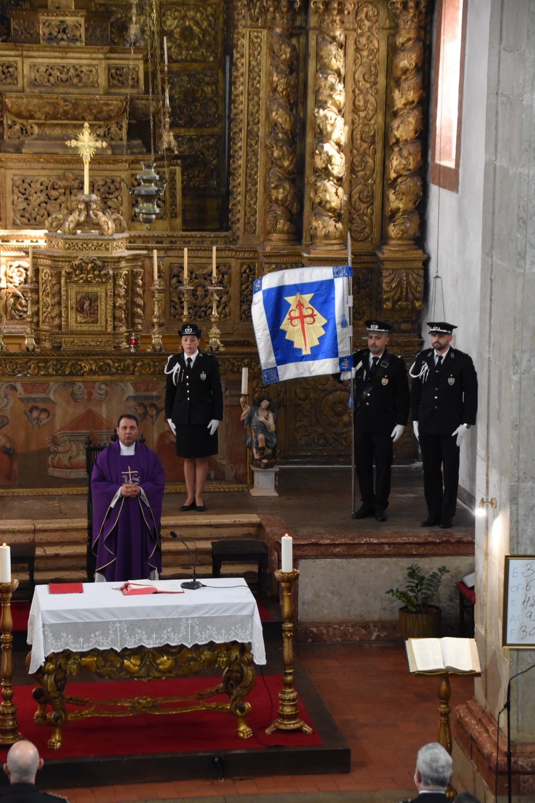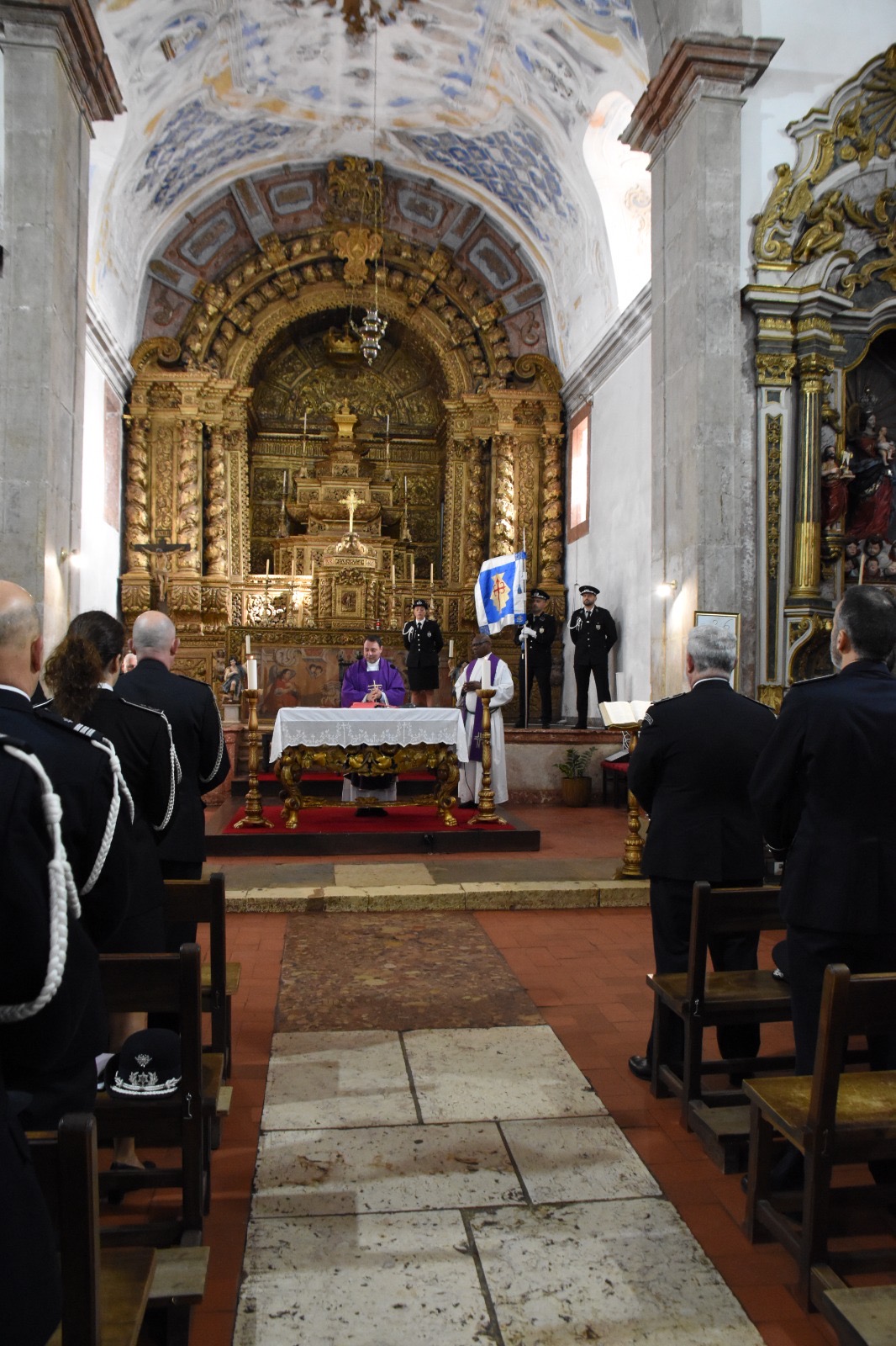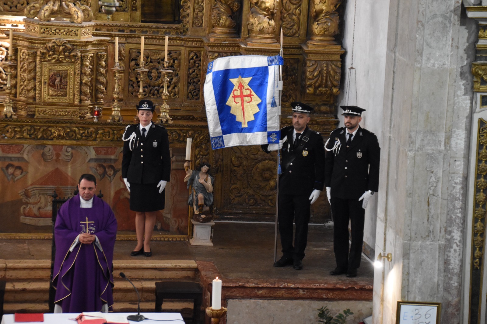 A Eucaristia foi presidida pelo Capelão Adjunto para a PSP, Padre Luís Leal, e concelebrada pelo pároco local, Padre Abraão. A cerimónia contou com a presença de altas individualidades da estrutura policial e do poder local, destacando-se o Diretor Nacional da PSP, Superintendente-Chefe Luís Carrilho, e o Comandante Distrital de Setúbal, Superintendente Carlos Resendes.